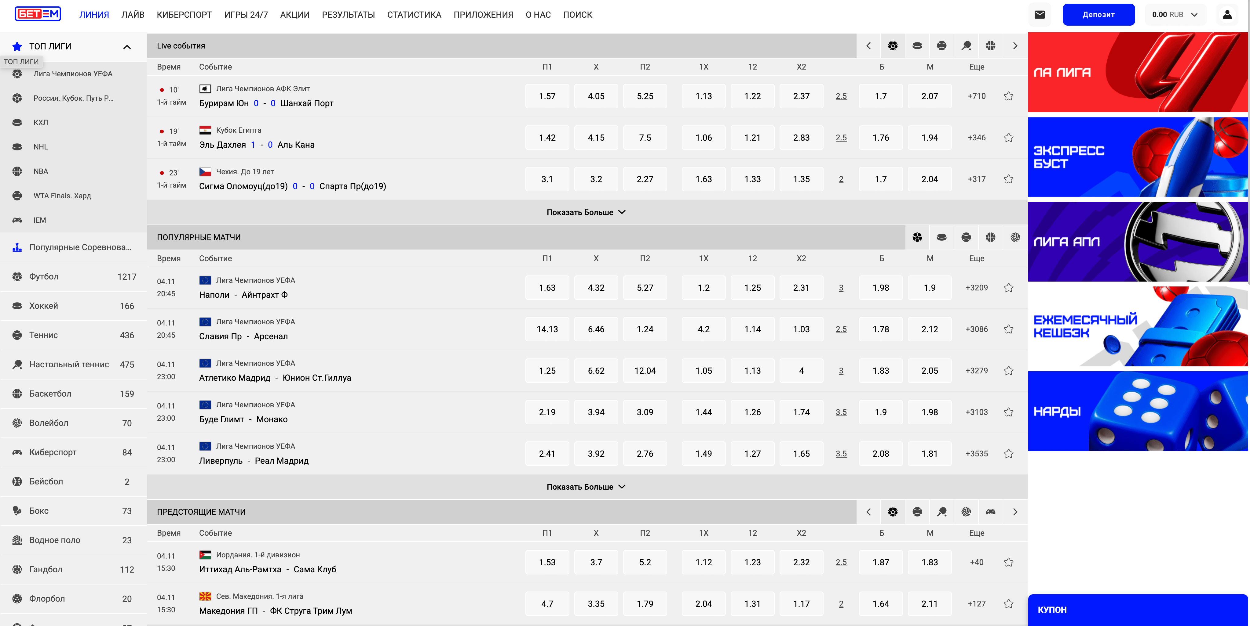 Bet-M дает широкие возможности для ставок на спортивный и киберспортивный контент, охватывая около 40 разных видов спорта, включая традиционные футбол, хоккей, баскетбол, теннис, а также специфичные активности вроде крикета и сквоша. Для любителей виртуальных игр предусмотрен обширный раздел киберспорта с выделенными категориями CS2, Dota 2, LoL и Valorant.
