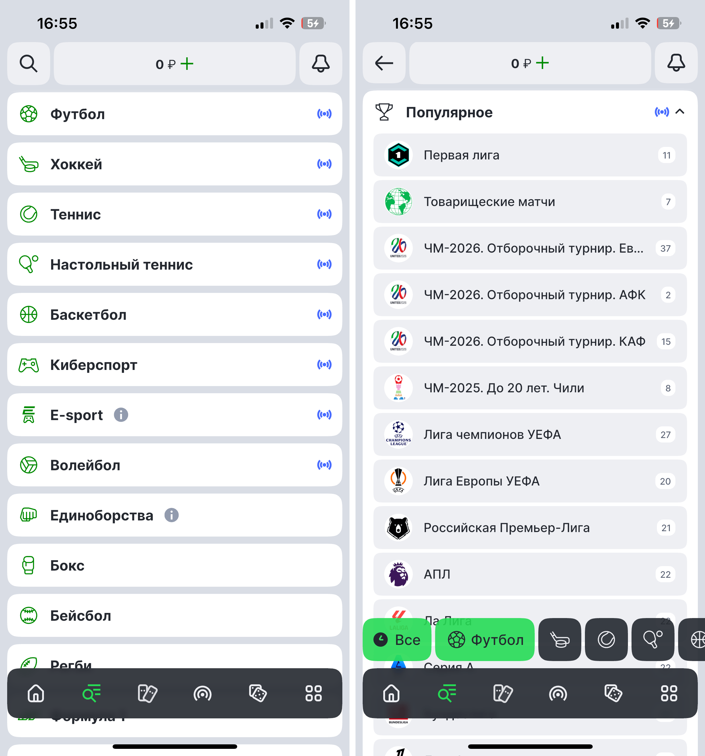 - Live-ставки: Возможность делать ставки в режиме реального времени по мере хода спортивного события.