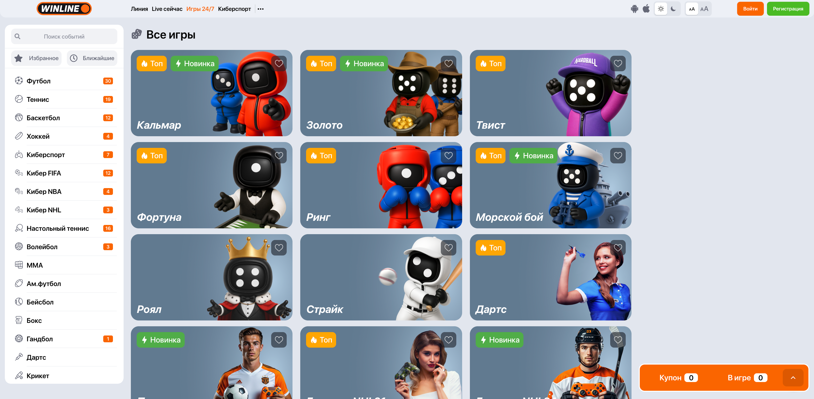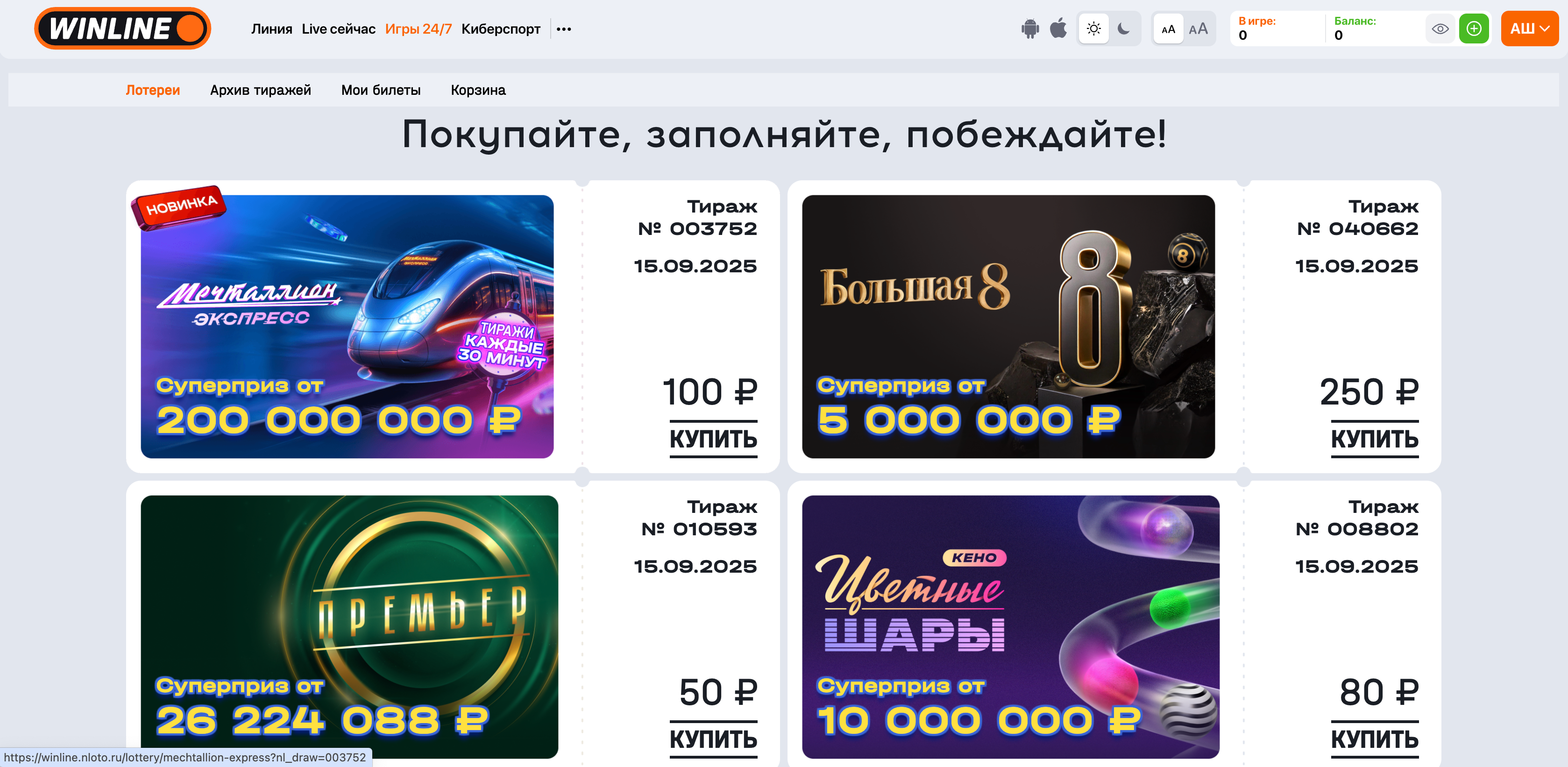 - Установите приложение Винлайн или зайдите на официальный сайт.