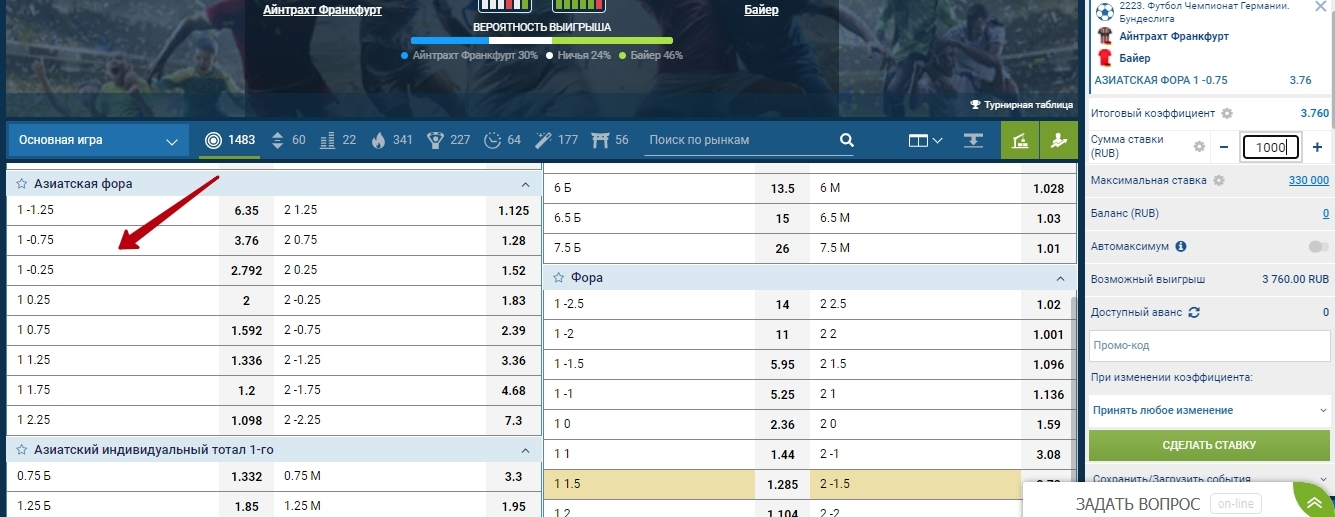 Азиатская фора 1xBet предусматривает значение с четвертью. Одна из частей такого вида форы идет на ближайшую целочисленную, а вторая на дробную. Как правило, чаще всего азиатский гандикап используется в футболе и хоккее. Такая ставка имеет три варианта расчета: победу/поражение, выигрыш или возврат.