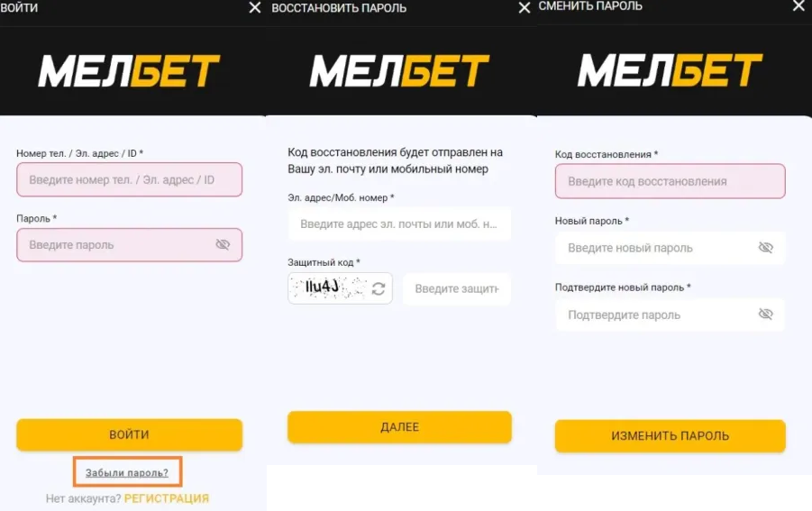БК Мелбет, восстановить пароль к учетной записи, что нужно знать