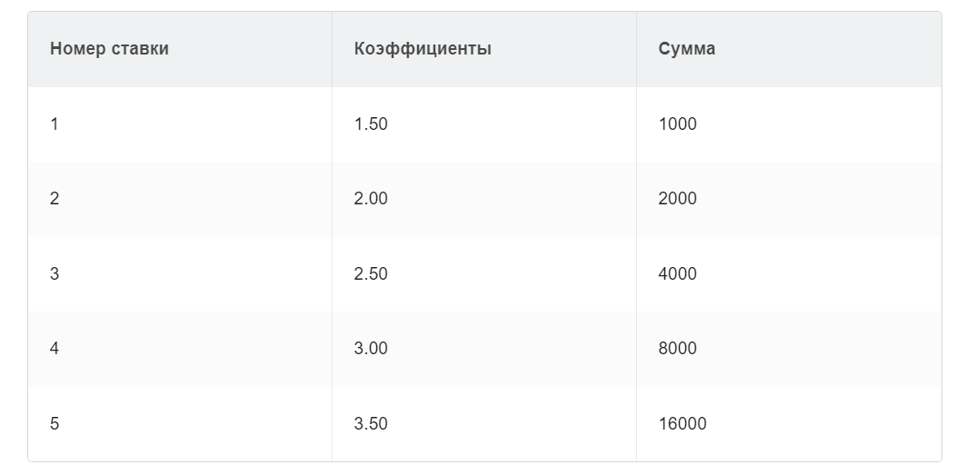 Также в ставках на спорт есть и такая стратегия, как датская. Между этими двумя системами часто проводят аналогию. Принцип такой же, но есть одно отличие. Сумма пари не удваивается, а растет в арифметической прогрессии. Номинал пари увеличивается на сумму первоначальной ставки, т.е., она прибавляется к последующим.