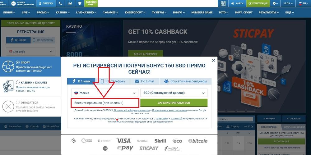 Отвечая на вопрос как использовать промокод 1xBet хотелось бы сказать, что букмекер предусмотрел два варианта для активации секретной комбинации.