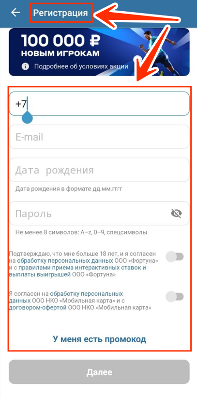 - Галочка. Подтверждение возраста 18+, согласие с правилами и согласие на обработку персональных БК Бетсити и ООО НКО «Мобильная карта». (это нужно для регистрации в ЦУПИС Бетсити).