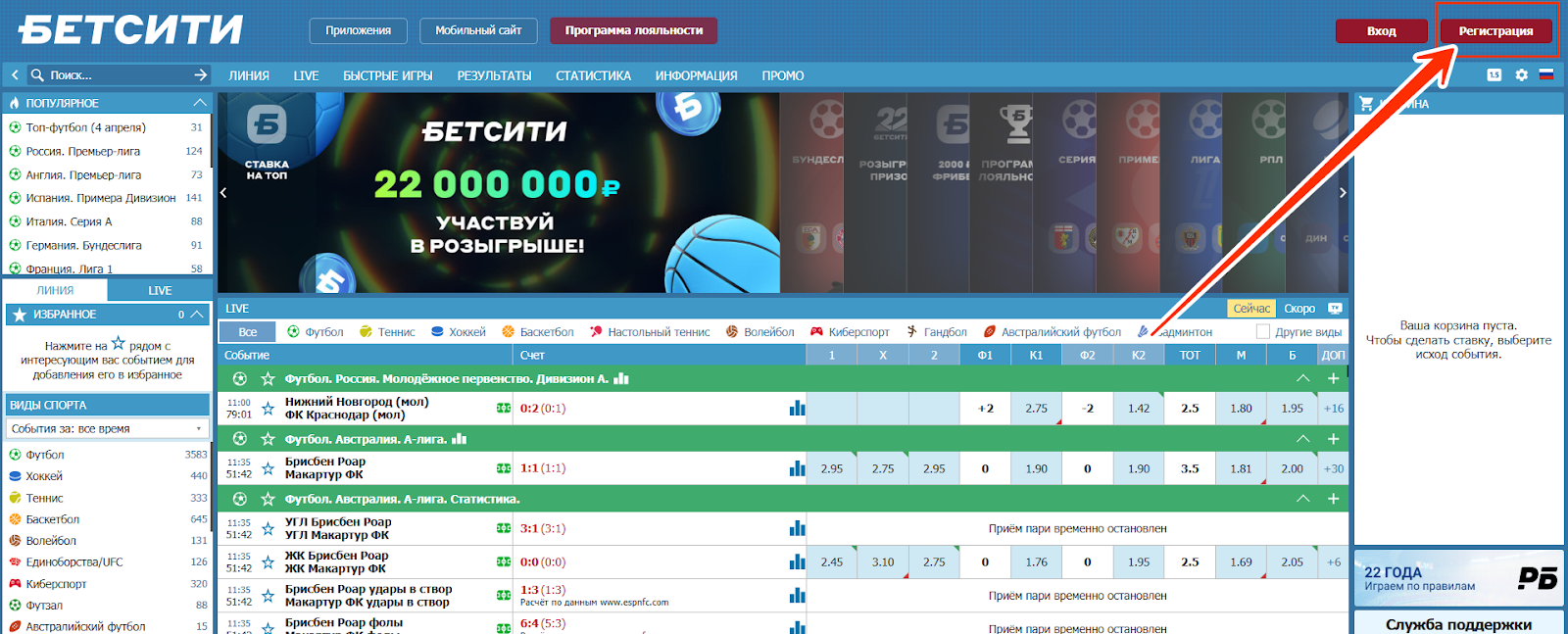 Регистрация в Бетсити нужна для того, чтобы стать клиентом данной БК и абсолютно легально делать ставки на спорт. Создание аккаунта и дальнейшая идентификация в Betcity открывает перед вами много возможностей: